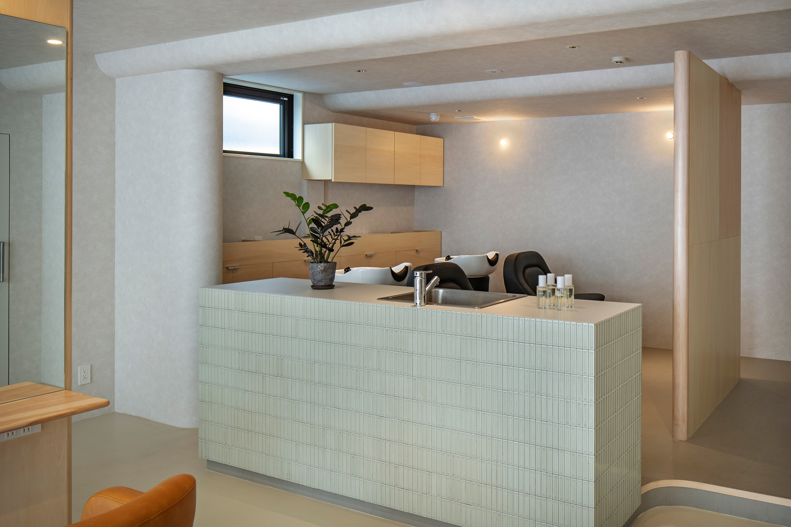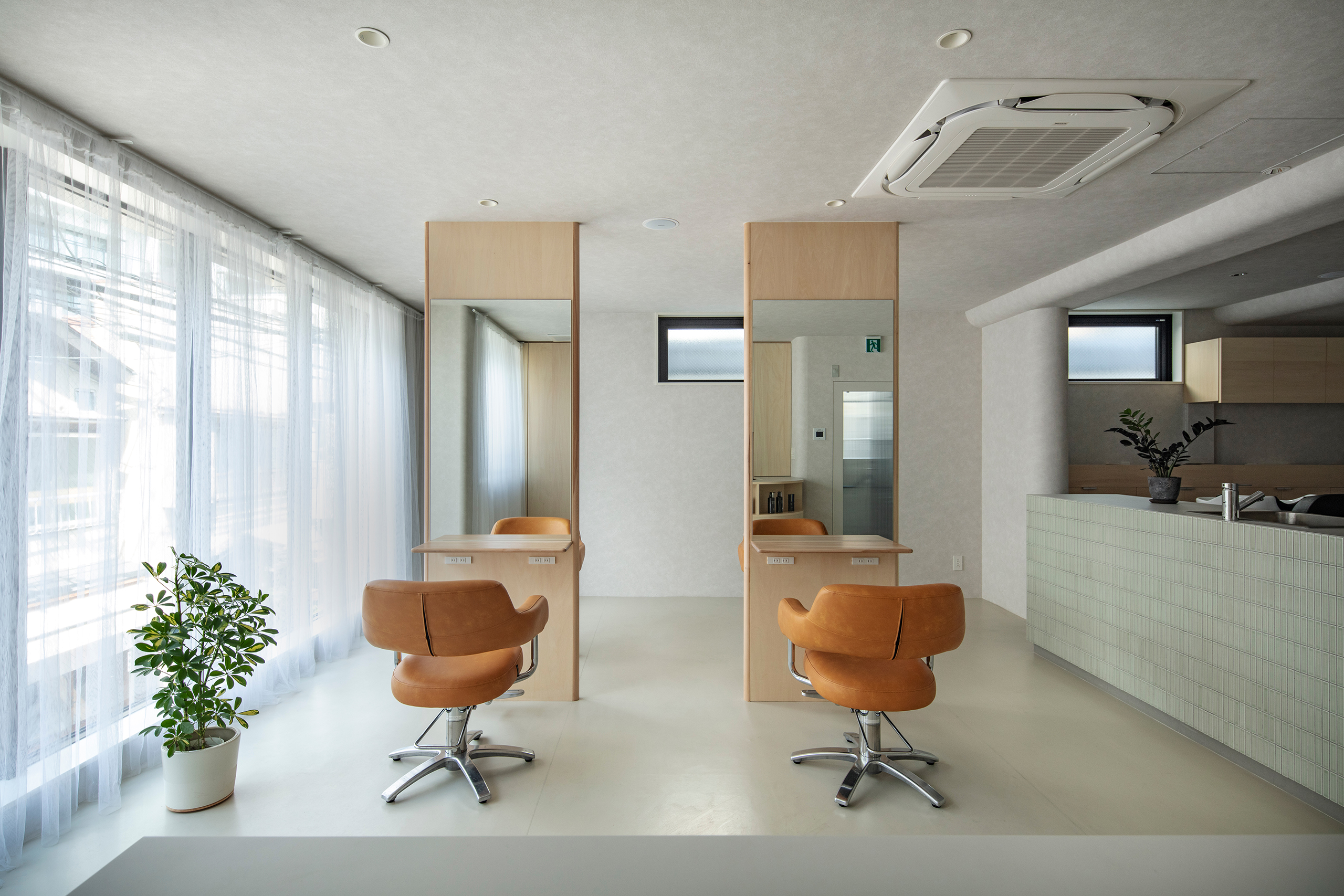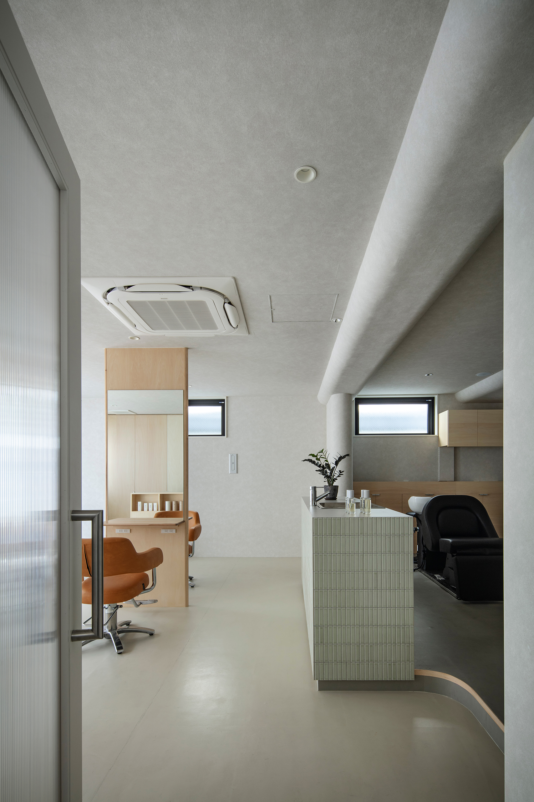縮毛矯正の施術は数時間に及び、カットまで含めると4〜5時間かかることもある。この長時間にわたる滞在はサロン経営においても、サービス内容や客層にも影響を与える、重要な要素であった。計画においても長時間の滞在を主軸に置き、時間が経てば意識から消えてしまうような、弱い空間を目指した。